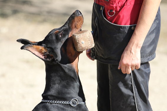 На відміну від випробувань працюють 2 помічника. Вони намагаються по черзі викрасти річ у собаки.